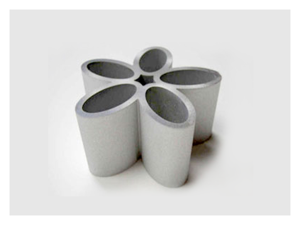 材料經由水刀研磨加工後,有一平整,如緞子般的切面,類似噴砂處理後的效果。