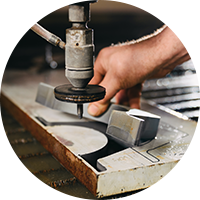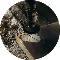 本公司使用美國OMAX 80160水刀設備機種,同時搭配5軸傾斜刀頭,並且搭配大量的實際切割模型修正參數,使得精度到達以往無法到達的高精度,刀頭可傾斜9°旋轉,用以解決切割面錐度急轉角外擴等問題。這也將水刀切割的品質推進一個世代。所有的OMAX機器都能從各種的材料中創造出複雜的產品,包括金屬、塑膠、玻璃、陶瓷及復合物。皆可直接從CAD/CAM 以DXF圖檔匯入後執行製作。